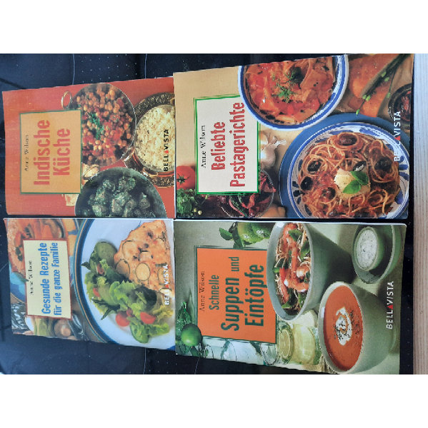 4 Hefte: "Gesunde Rezepte für die ganze Familie", "Indische Eintöpfe", "Suppen und Eintöpfe" und "Pastagerichte"