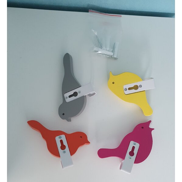 4 Kleiderhaken aus Holz in Form eines Vogels. Mit Dübel und Schrauben.