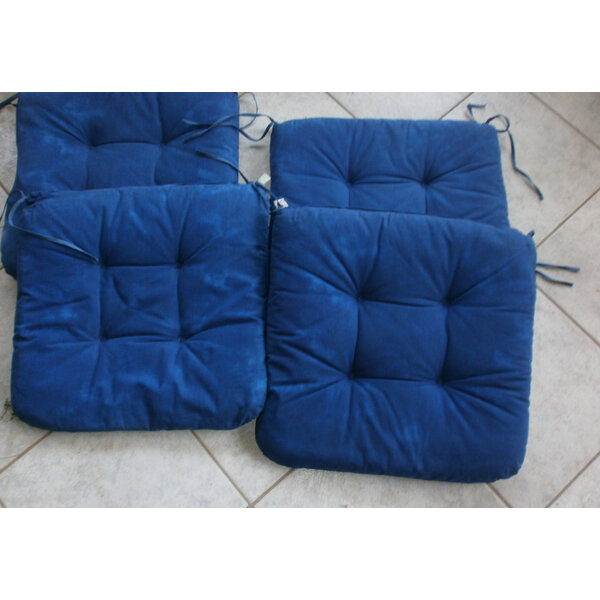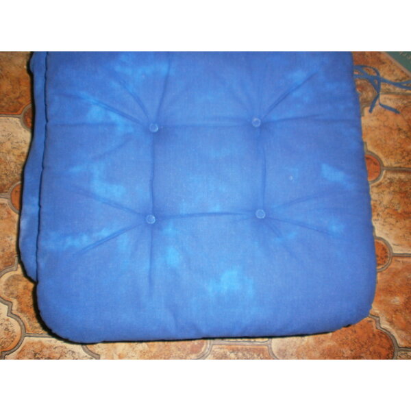 4 Stuhlkissen blau, je 2 Bändel mit 25 cm, 100% Baumwolle, Füllung PES Watter, bei 30 Grad waschen.