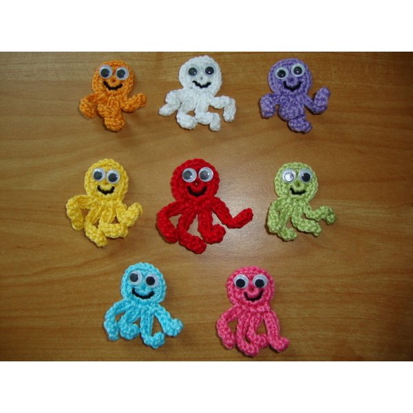 Sucht euch 4 Tintenfische nach Farben heraus. Sie sind aus Baumwolle mit Wackelaugen, daher auch nicht waschbar.