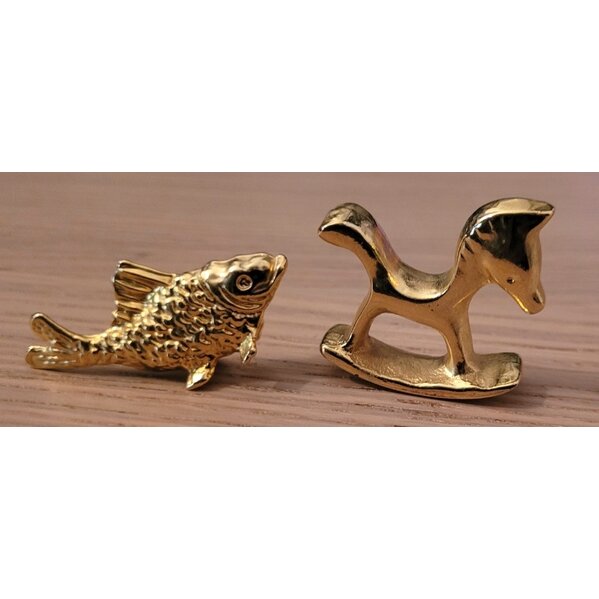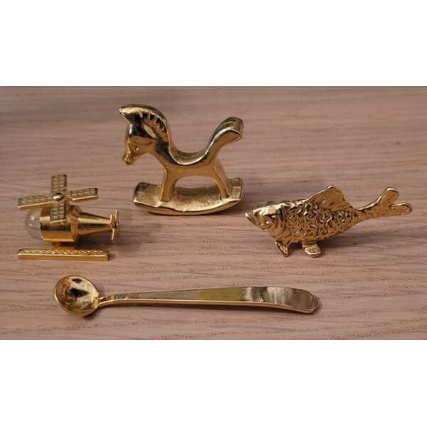 4 glänzende, goldfarbene Teile, die prima für den Setzkasten oder das Puppenhaus geeignet sind:) Das *Schaukelpferd ist 4 cm lang, 3,3 cm hoch, 1,3 cm breit und ziemlich schwer.