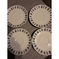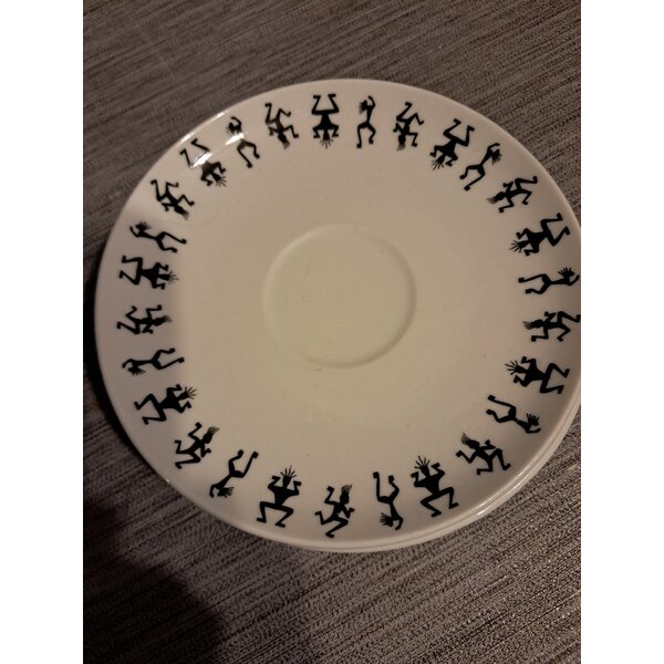 Leider gibt es keine passenden tassen mehr dazu, aber einfache scwarze oder weiße Tassen würde das Set gut aufwerten. Das Muster sind stilisierte, tanzende Figuren, die Felsmalereien oder Höhlenzeichnungen ähneln.