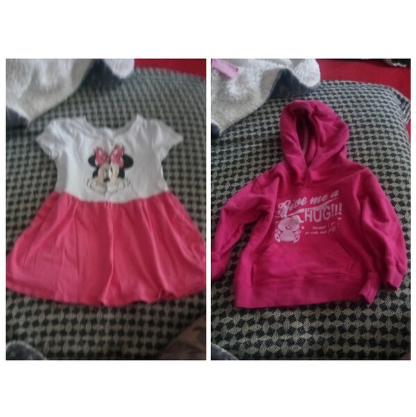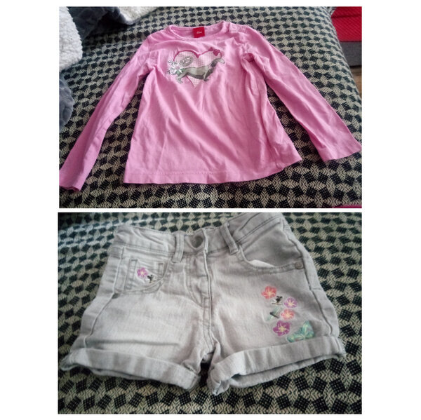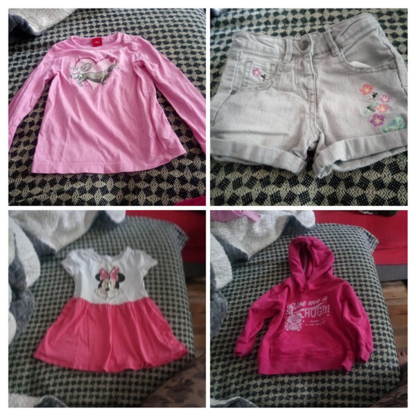 4 tlg. Mädchen Kleidungspaket Gr. 86/92, Short Ernstings Gr. 86, Hoodie Ergee Gr. 86, s.oliver Shirt Gr. 86 und Kleidchen Disney 92