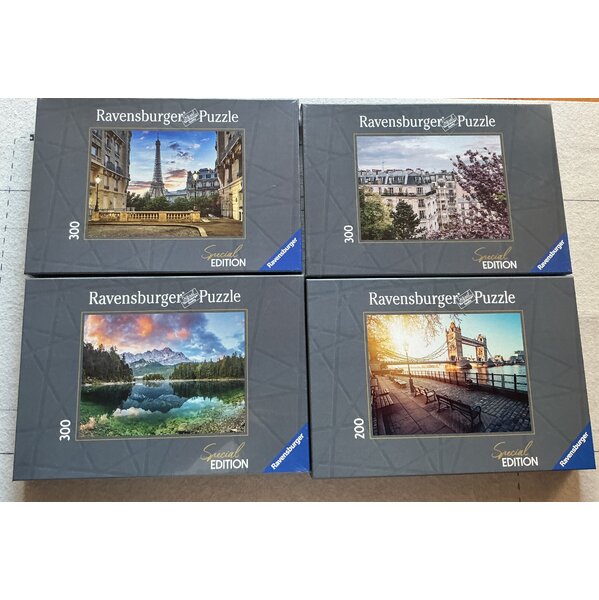 Sehr große Puzzlestücke, vermutlich für Sehbehinderte. Tolle Motive, sehr gute Qualität. Sollte kein Tausch zustande kommen, puzzle ich die jetzt noch verschweißten selbst. Falls das wichtig ist, vorher fragen, ob sie noch verschweißt sind.