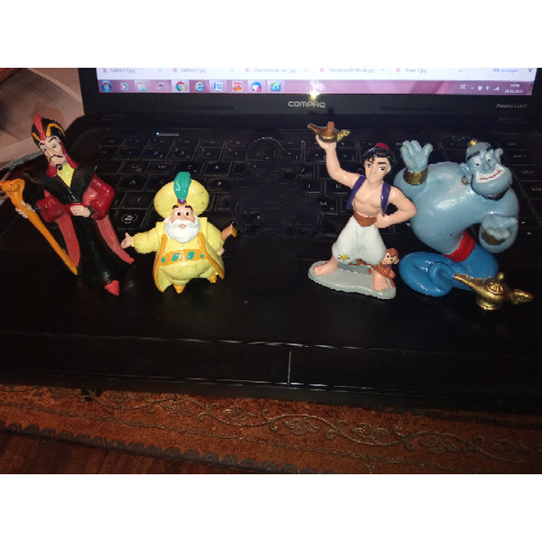 4 x Bullyland : Aladdin (ca. 8 cm) , Zauberer (ca. 9 cm) Scheich (ca. 7,5 cm) und Gin (ca. 8 cm)