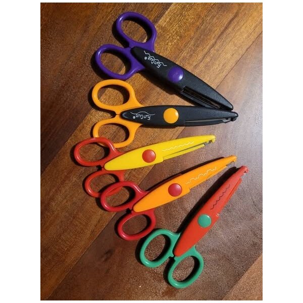 5 verschiedene Bastelscheren mit verschiedenen Wellen, Zackenschnitten.