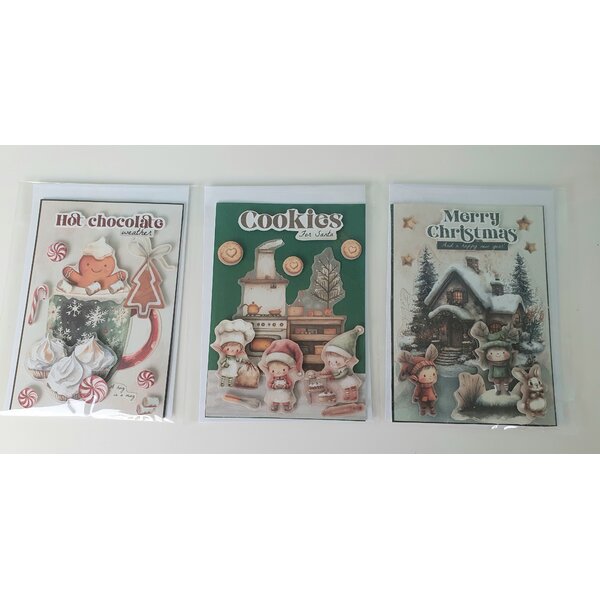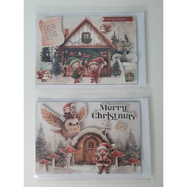 5 Grußkarten mit weihnachtlichem Motiv in 3D-Technik. Dazu gibt es passende Kuverts. Jede Karte ist in einem Folienbeutel verpackt