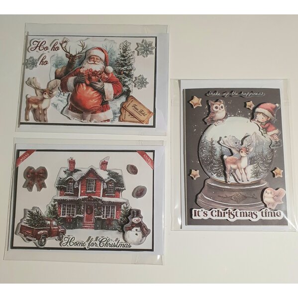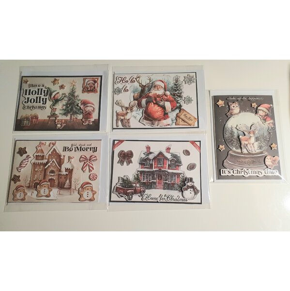 5 Grußkarten mit weihnachtlichem Motiv in 3D-Technik. Dazu gibt es passende Kuverts. Jede Karte ist in einem Folienbeutel verpackt.