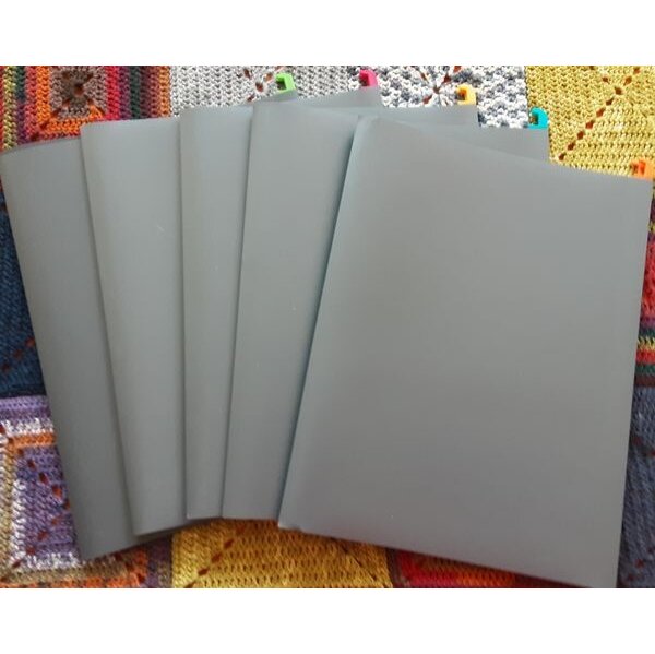 5 Hängeordner in einer Größe von 32 x 24 cm, jeweils mit bunten Aufhängeschienen, Farbe ist ansonsten dunkelgrau