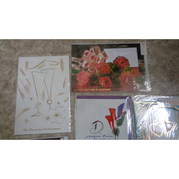 die beiden Karten mit dem Rosenmotiv sind dazu noch Geldscheinkarten, d.h. im Inneren ist jeweils noch ein kleines Kuvert für einen oder mehrere Geldschein(e) aufgeklebt