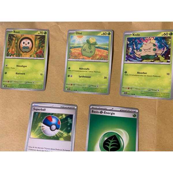 3 Pokemon Karte, eine Energy und eine Trainer Karte