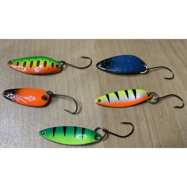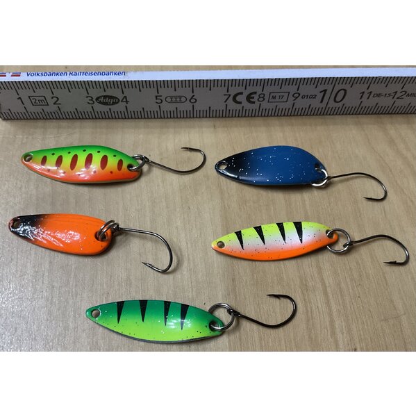 Spoons zum Angeln auf Forelle und Saiblinge mit Einzelhaken - so wie an Forellenseen gefordert - auch fängig auf Barsch.