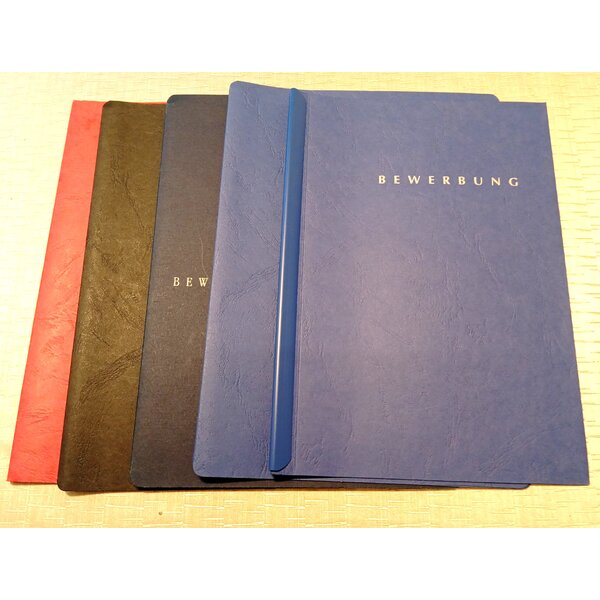 5 Stück Bewerbungsmappen - 4 Mappen = 3-teilig - 1 Mappe normal - Farben: 3 x blau, 1 x rot, 1 x schwarz