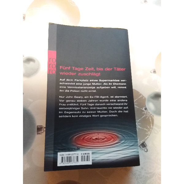 Fünf Tage Zeit, bis der Täter wieder zuschlägtAuf dem Parkplatz eines Supermarktes verschwindet eine junge Mutter. Als ihr Ehemann eine Vermisstenanzeige aufgeben will, nimmt ihn die Polizei nicht ernst. Nur John Geary, ein Ex-FBI-Agent, ist alarmiert. Vor genau sieben Jahren wurde eine andere Frau entführt. Fünf Tage danach verschwand ihr siebenjähriger Sohn. Und tauchte nie wieder auf. Im Gegensatz zu seiner Mutter. Doch die hat seitdem kein einziges Wort gesprochen.