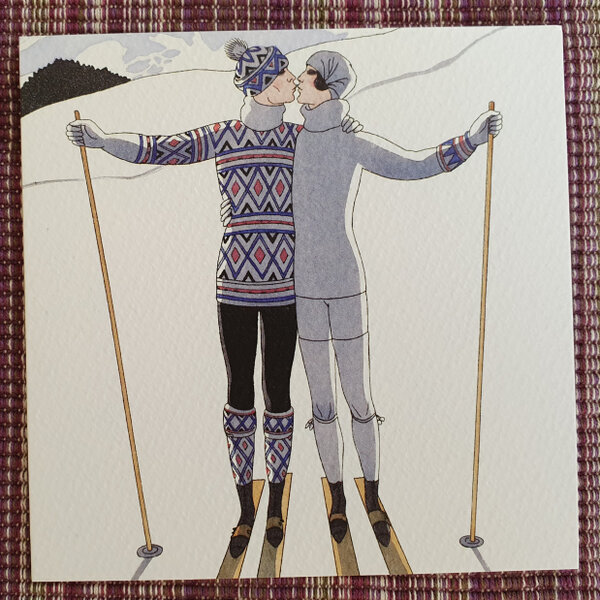 Winter, Ski, Liebe, Kuss, Weihnachtskarte, Sport, Kunstkarte