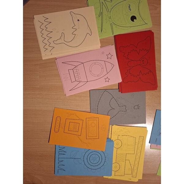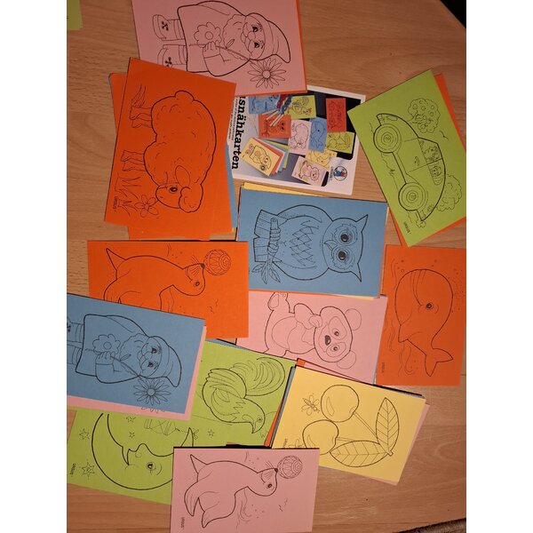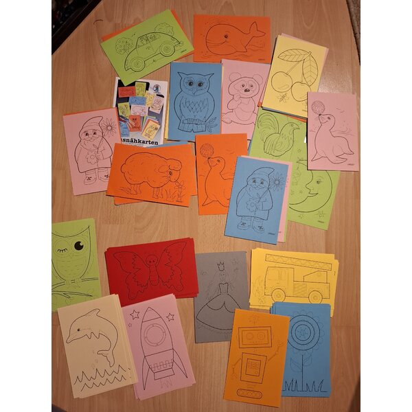 60 Ausnähkarten, 30 von Ursus und 30 no name, verschiedene Farben und Motive. Kein Garn dabei.