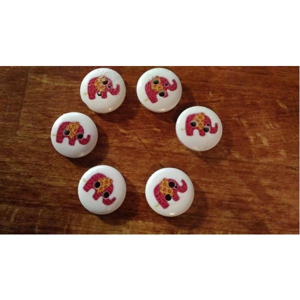 6 Elefanten Knöpfe im Farbenmix wie abgebildet.