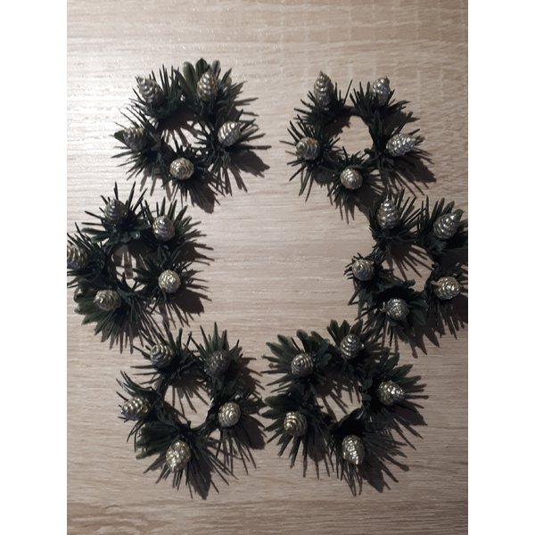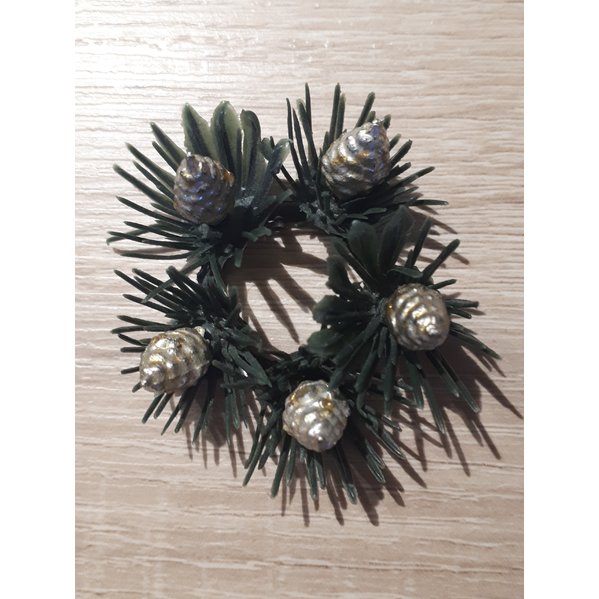 Durchmesser des Rings: 2 cm. Ein 7. Kränzchen (gerissen), siehe 3. Foto, lege ich dazu , falls mal Ersatz für die goldenen Zapfen gebraucht wird.
