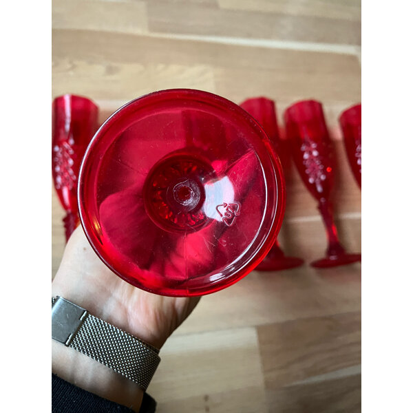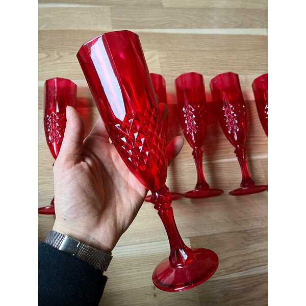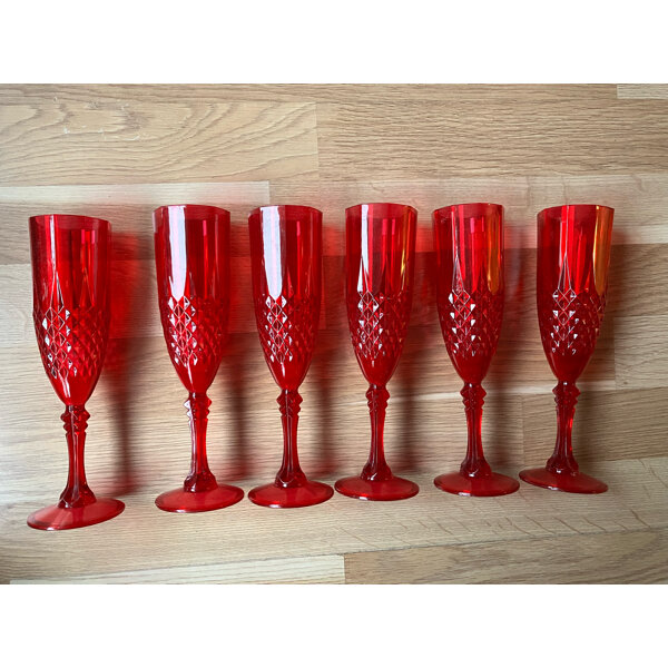 6 rote Sektgläser aus Plastik für Festival & Camping.