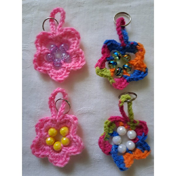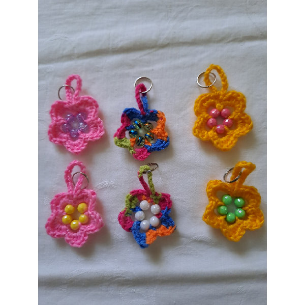 6 gehäkelte Blumenschlüsselanhänger mit verschiedenen Perlen