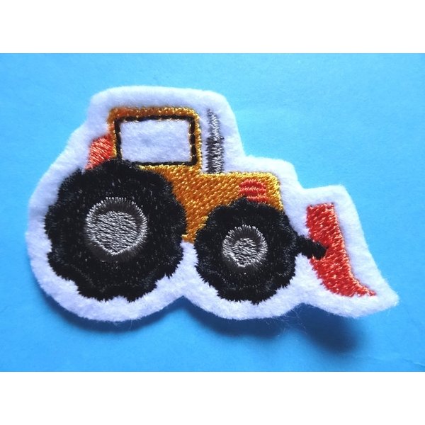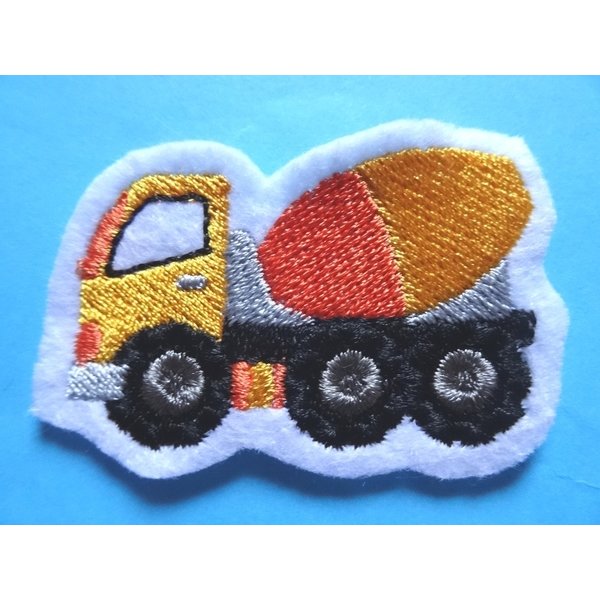 6 kleine Baufahrzeuge - Aufnäher LKW Raupe Schaufelbagger Kran Traktor und Betonmischer