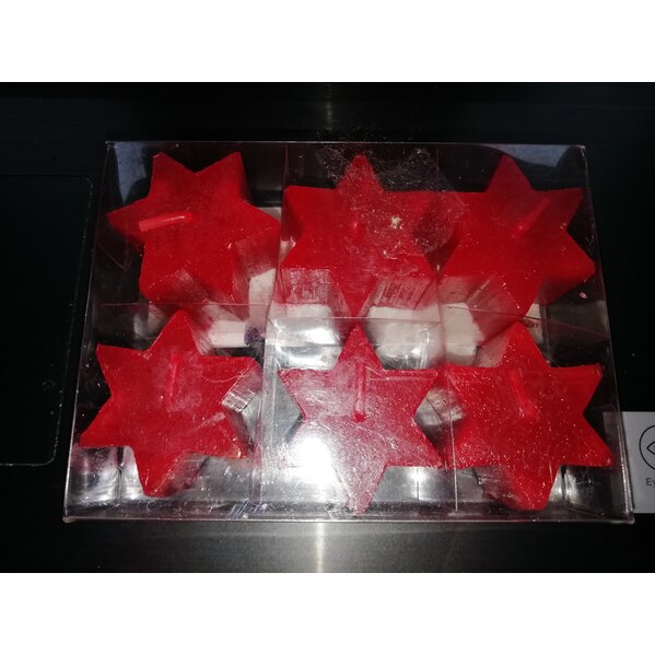 6 niedliche Kerzen in Sternform, schön für Advent und Weihnachten, 3 x 3 cm, rot.