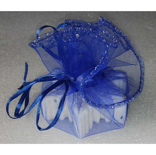 Ich biete hier 3 blaue und 3 gelbe runde wunderschöne Organza-Verpackungen an.