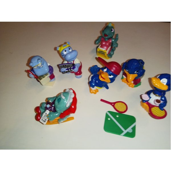 Aus der Vitrine, sauber, komplett, aber ohne BPZ. Ich löse meine Sammlung aus, hier Einzelteile aus Serien der späteren 90er. Tennis-Pingos, einer mit abnehmbaren Teilen, Dinos (Schaukelstuhl komplett), Happy Hippos, ich denke, die Movie-Serie.