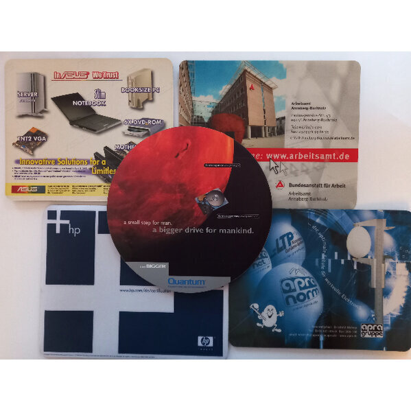 7 Mousepads mit Werbung unterschiedlicher Firmen