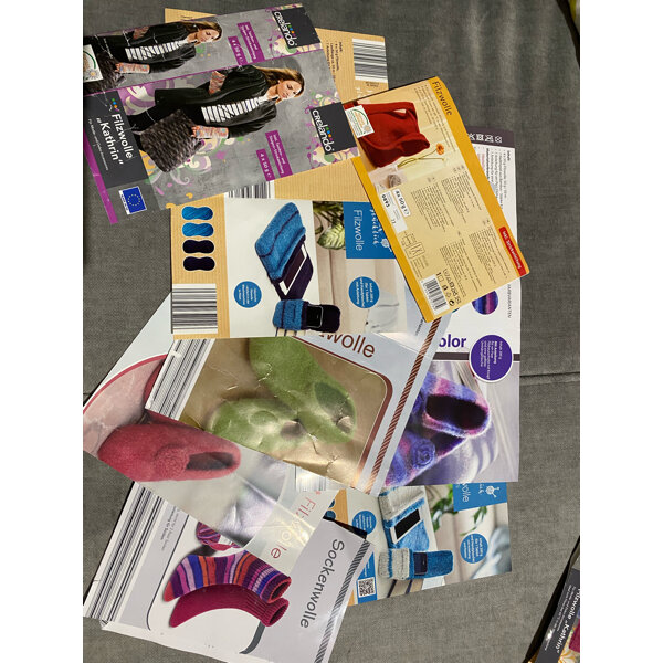 Mit diesen Anleitungen kann man mit Filzwolle einen Shopper, eine Umhängetasche, eine Handytasche eine Tablet Tasche, verschiedene puschen/Hausschuhe flach und hoch Stricken und anschließend Filzen.