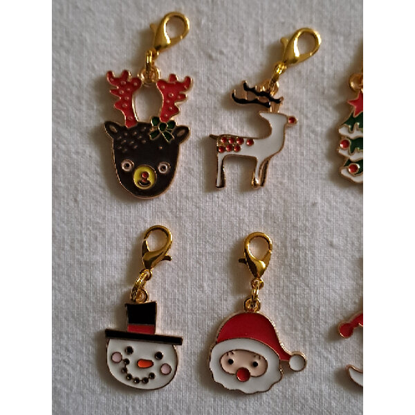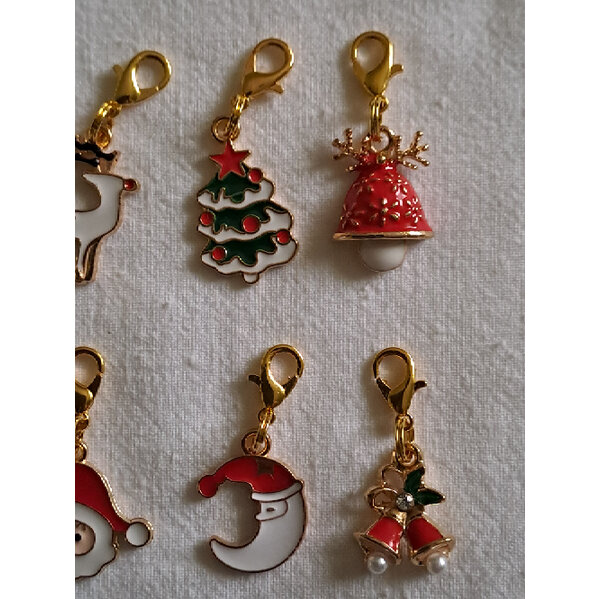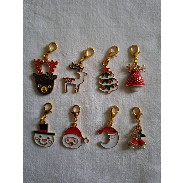 8 weihnachtliche Anhänger mit Karabiner (Emaille?)