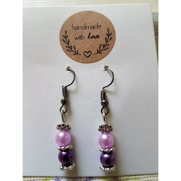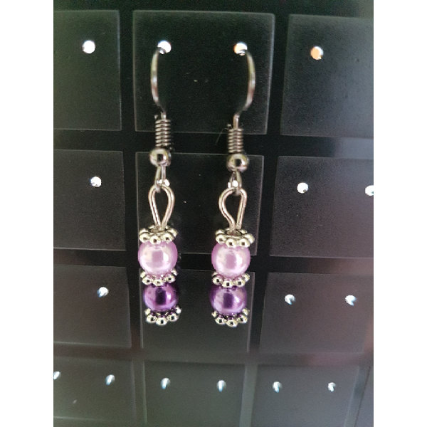Perlenohrringe mit einer lila und einer violetten Perle sowie 3 Perlenrädern