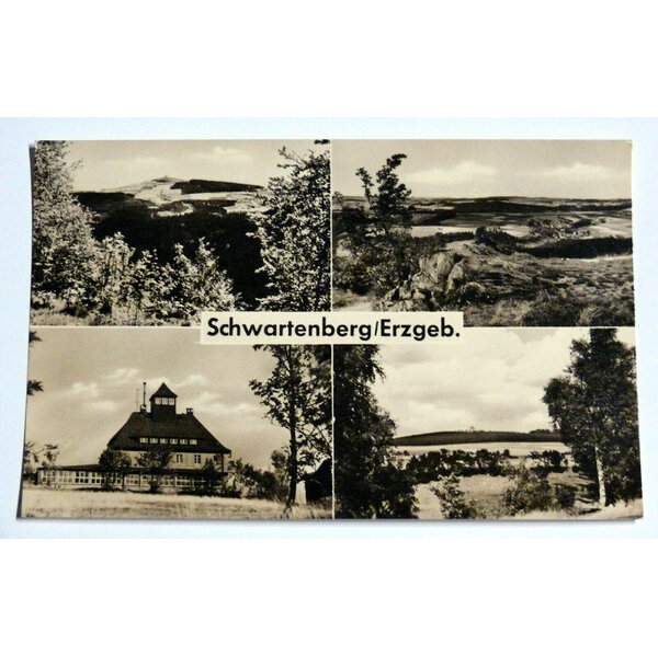 Mehrbildkarte mit den Motiven: Berggaststätte „Schwartenbergbaude“ und drei verschiedene Blickwinkel auf den Schwartenberg.