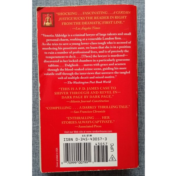 When distinguished criminal lawyer Venetia Aldridge defends a young man for the brutal murder of his mother, she views the case as simply another opportunity to demonstrate her brilliance in the courtroom. But within weeks of the trial Aldridge is found dead at her desk, a bloodstained barrister's wig on her head. And as Commander Adam Dalgliesh of Scotland Yard attempts to make sense of events, the murders continue, inexorably spiraling into fresh complexities of horror.
