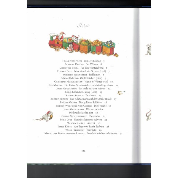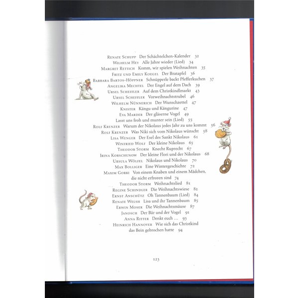 Der Duft von Tannenzweigen und Weihnachtsplätzchen liegt in der Luft. Und wenn am Adventskranz die erste Kerze brennt, wird es Zeit für Geschichten, Lieder und Gedichte. Sie erzählen von Nikoläusen, vom Plätzchenbacken, vom Wichteln, von Tannenbäumen, Weihnachtsengeln und natürlich vom Christkind und vom Wunder der Heiligen Nacht. Geschichten und Gedichte von Max Bolliger, Josef Guggenmos, Janosch, Irina Korschunow, Rolf Krenzer, James Krüss, Christian Morgenstern, Otfried Preußler, Ursel Scheffler, Fredrik Vahle und vielen anderen.