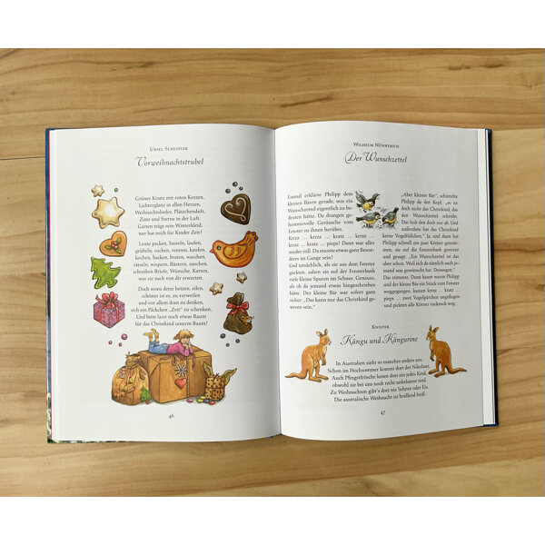 Der Duft von Tannenzweigen und Weihnachtsplätzchen liegt in der Luft. Und wenn am Adventskranz die erste Kerze brennt, wird es Zeit für Geschichten, Lieder und Gedichte. Sie erzählen von Nikoläusen, vom Plätzchenbacken, vom Wichteln, von Tannenbäumen, Weihnachtsengeln und natürlich vom Christkind und vom Wunder der Heiligen Nacht. Geschichten und Gedichte von Max Bolliger, Josef Guggenmos, Janosch, Irina Korschunow, Rolf Krenzer, James Krüss, Christian Morgenstern, Otfried Preußler, Ursel Scheffler, Fredrik Vahle und vielen anderen.