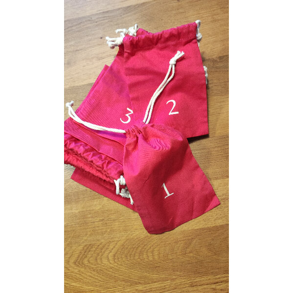 Die 24 Baumwollesäckchen waren einmal original mit Hauschkakosmetik befüllt. Säckchen 1,8 und 24 sind die größeren.