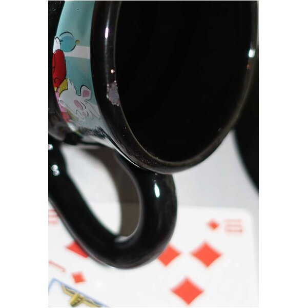 Die Tasse (aus dem Disneystore) ist zum Trinken nur bedingt geeigent. Sie hat am oberen Rand 2 sehr leichte Abplatzer, durch etwas Farbe aber kaum mehr sichtbar. Zur Deko geeignet