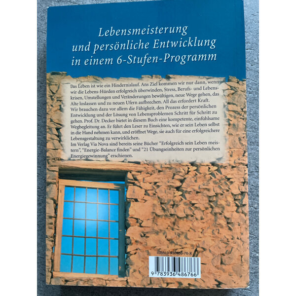 Das Leben ist wie ein Hindernislauf. Ans Ziel kommen wir nur dann, wenn wir die Lebens-Hürden erfolgreich überwinden, Stress, Berufs- und Lebenskrisen, Umstellungen und Veränderungen bewältigen, neue Wege gehen, das Alte loslassen und zu neuen Ufern aufbrechen. All das erfordert Kraft. Wir brauchen dazu vor allem die Fähigkeit, den Prozess der persönlichen Entwicklung und der Lösung von Lebensproblemen Schritt für Schritt zu gehen. Prof. Dr. Decker bietet in diesem Buch eine kompetente, einfühlsame Wegbegleitung an. Er führt den Leser zu Einsichten, wie er sein Leben selbst in die Hand nehmen kann, und eröffnet Wege, sie auch für eine erfolgreichere Lebensgestaltung zu verwirklichen.