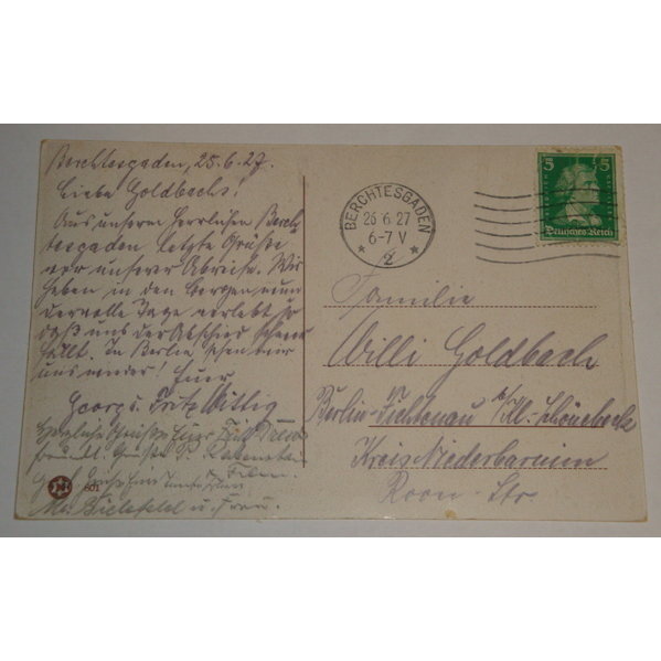 Postialisch befördert mit Poststempel "Berchtesgaden" am 26.6.1927.