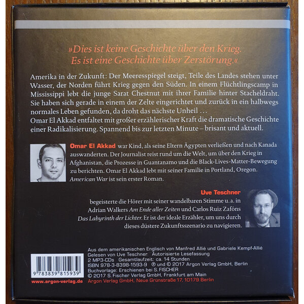 Uve Teschner begeisterte die Hörer mit seiner wandelbaren Stimme zuletzt in Adrian Walkers "Am Ende aller Zeiten" und Záfons "Der Schatten des Windes". Er ist der ideale Erzähler, um einen durch dieses düstere Zukunftsszenario zu navigieren.