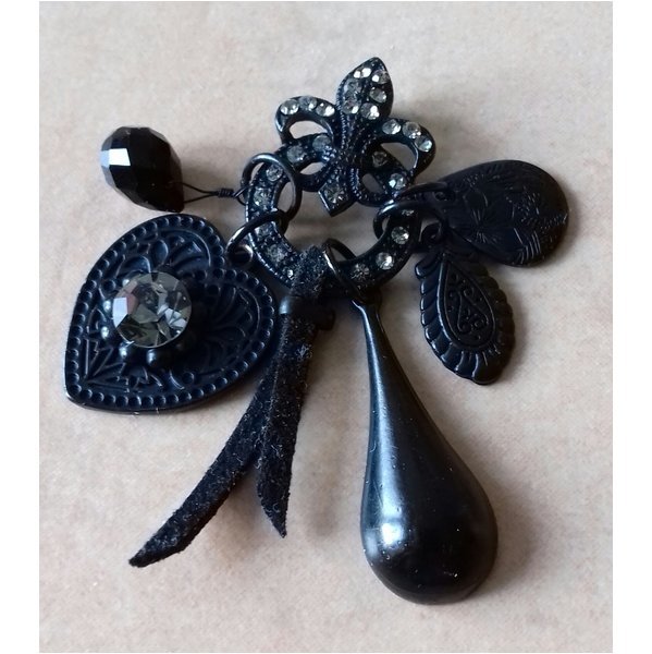 Sehr schöner Anhänger, Metall mit schwarzer Beschichtung und einem Glitzer Steinchen.