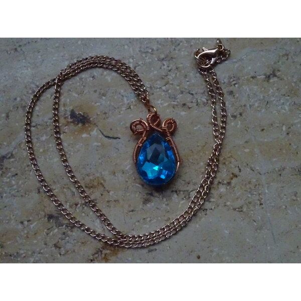 Handgefertigter Anhänger mit blauem, schön facettierten Glasstein. Die Kette gibt es mit dazu.