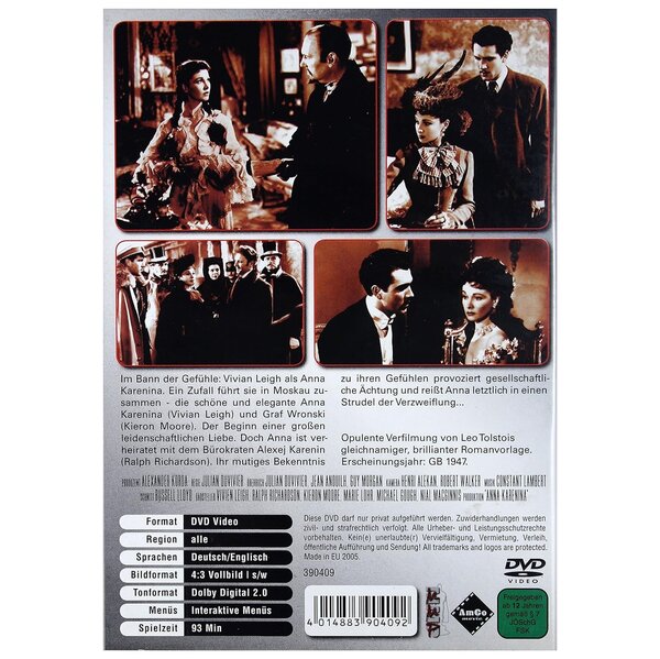 Im Bann der Gefühle: Vivian Leigh als Anna Karenina. Ein Zufall führt sie in Moskau zusammen - die schöne und elegante Anna Karenina und Graf Wronski. Der Beginn einer großen leidenschaftlichen Liebe. Doch Anna ist verheiratet mit dem Bürokraten Alexej Karenin. Ihr mutiges Bekenntins zu ihren Gefühlen provoziert gesellschaftliche Ächtung und reißt Anna letzlich in einen Strudel der Verzweiflung...