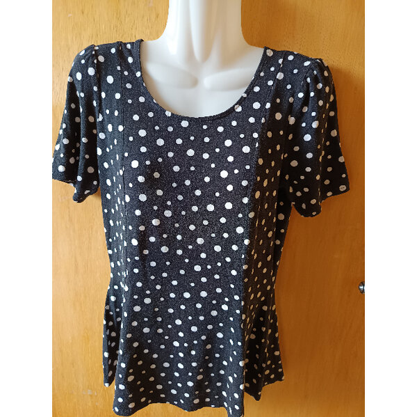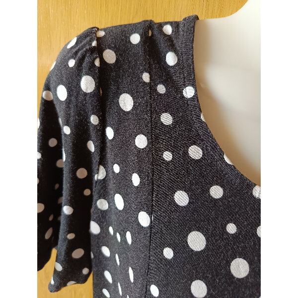 Apartes Shirt von AMY VERMONT, den Waschzettel mit Größenbezeichnung habe ich leider raus geschnitten, aber ich habe es bei 36/38 getragen. Tailierter Schnitt mit leicht ausgestellter Hüftpartie. Der Stoff wirkt leicht angegraut,war original so.