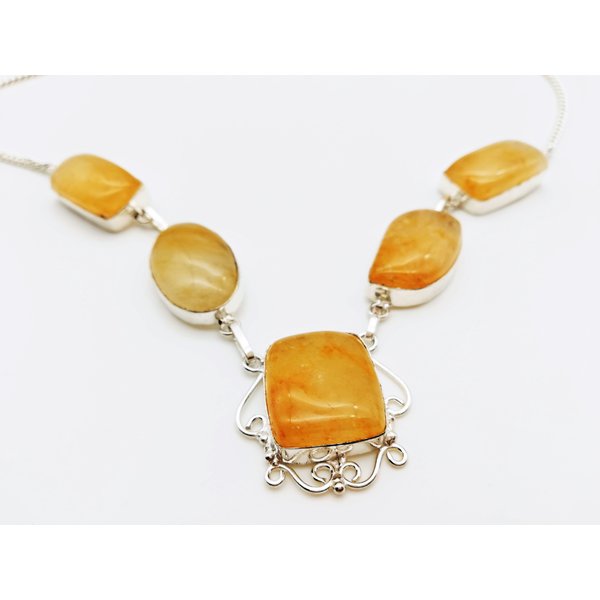 Gediegenes Calcit-Collier in einer dekorativen Metallfassung.