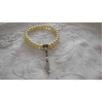 Armband mit kleinen Perlen und einem integriertem Anhänger, um die Charms daran zu befestigen. Der Feder Charm ist lang und somit lässt es sich lässig tragen.