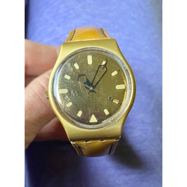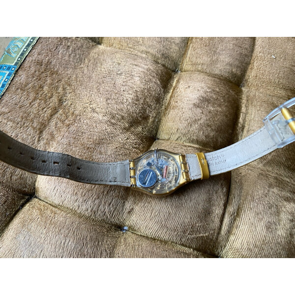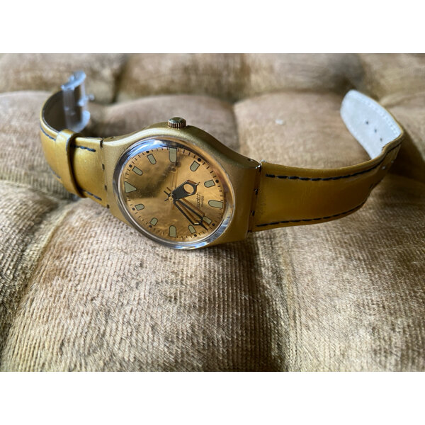Swatch Uhr goldfarben, ca 3 cm im Durchmesser