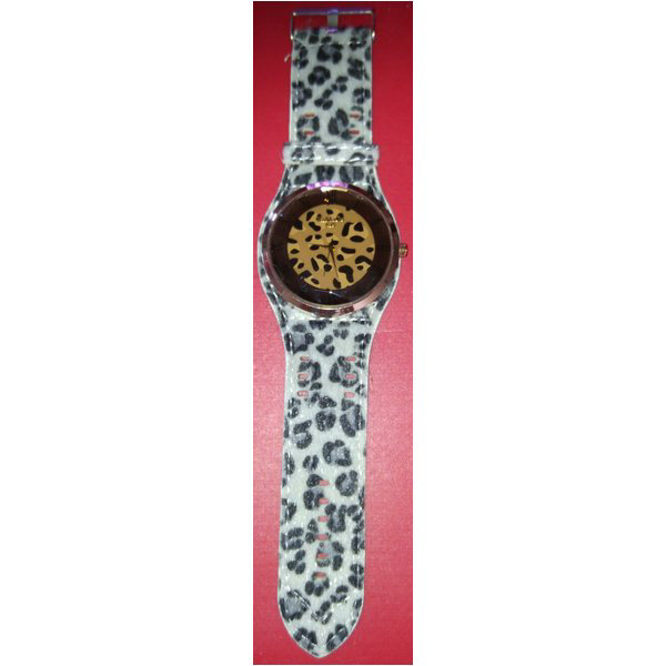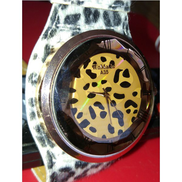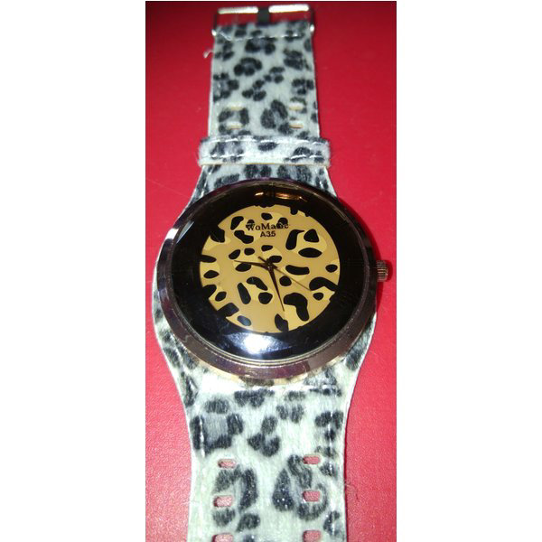 Damenarmbanduhr mit Batterie, Batterie neu, Armband Fellimitat, witzig, kuriose Uhr