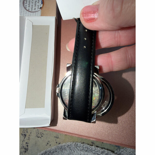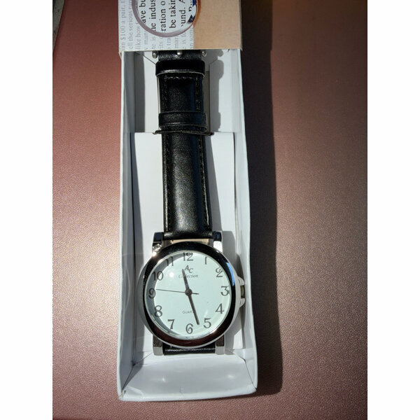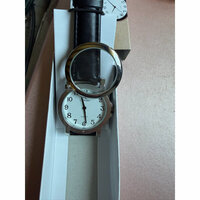 Armbanduhr ARMBAND UHR Leselupe Lupe weißes Zifferblatt schwarzes Leder Band Armband
